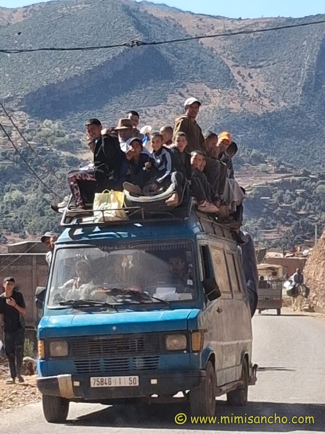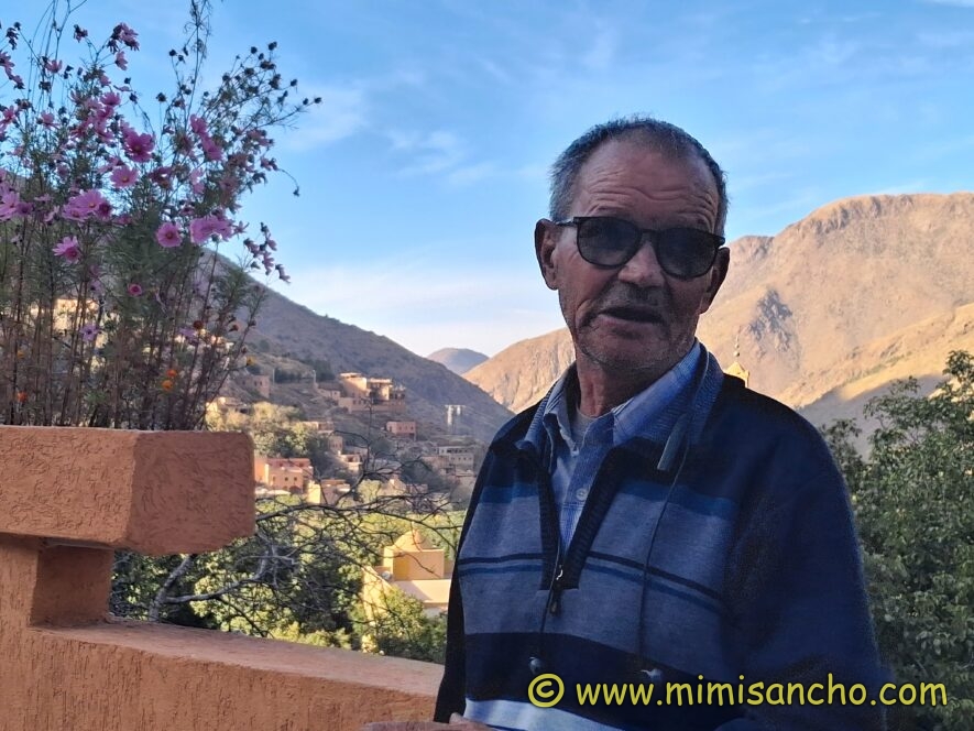Nous profitons de cet instant pour appeler notre ami Ignace, et c’est avec émotion qu’ils échangent pendant un petit moment, ainsi qu’avec Aurélie qui appellera juste à cet instant. Nous en profitons pour laisser des vêtements et des fournitures scolaires. Lhacen nous remercie, quelques photos souvenirs, quelques achats et nous partons d’Imlil.