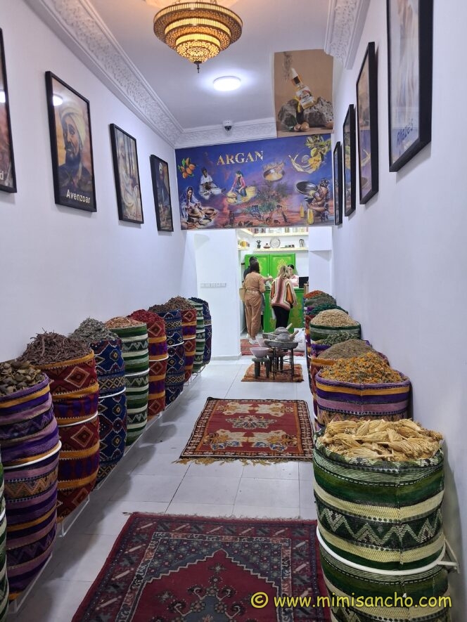 Visite d’une boutique avec des produits à base d’huile d’Argan, fabriqués par une coopérative de femmes.