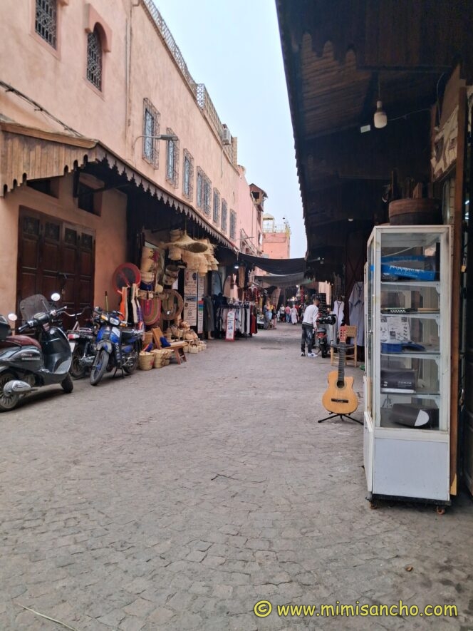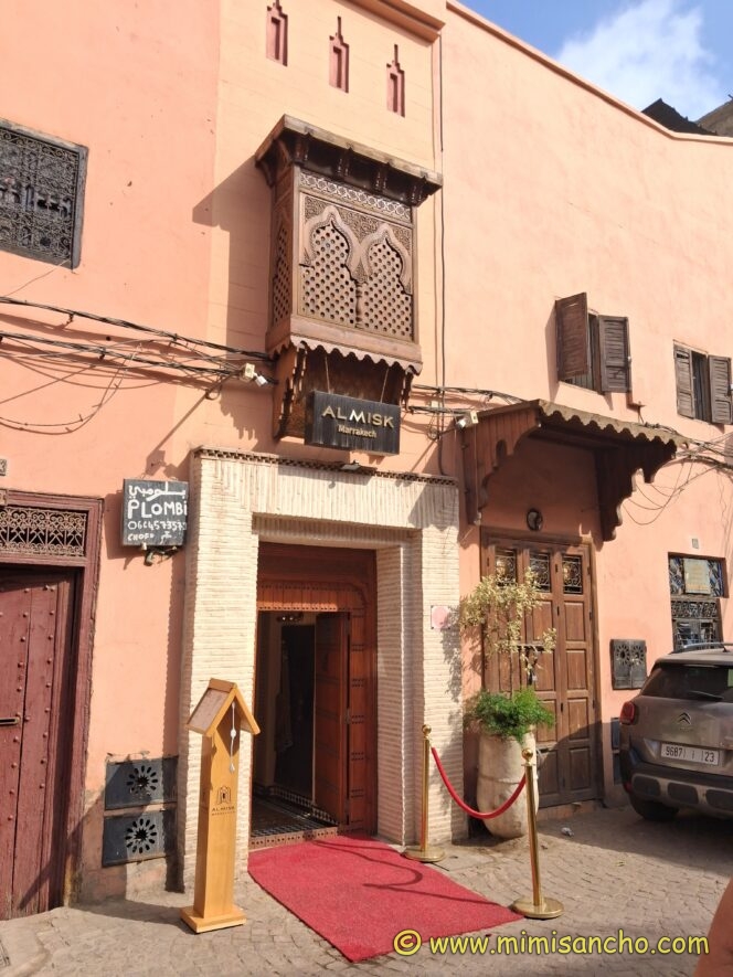Après 30 mn de taxi, nous voilà à Marrakech, la Ville rouge, comme on la surnomme, est une sentinelle aux portes du Sahara. Elle, qui n’était au départ qu’une vaste oasis au cœur d’une région aride, a su s’imposer comme la capitale touristique du pays. Elle présente deux visages distincts, d’un côté sa médina aux ruelles sinueuses qui grouillent d’habitants, d’artisans et de touristes, et de l’autre, une ville plus moderne, construite sous le protectorat français, avec ses boutiques de luxe et ses complexes hôteliers.