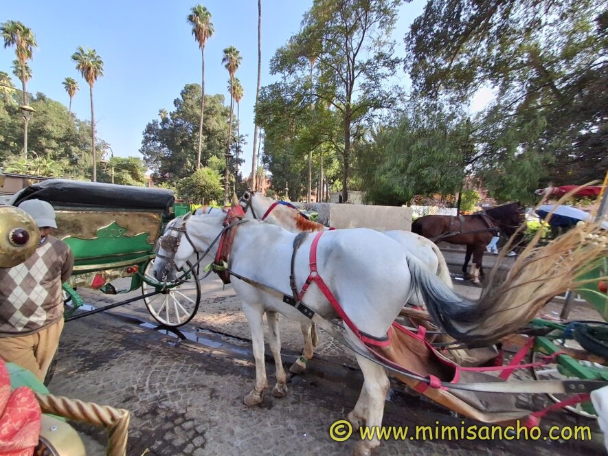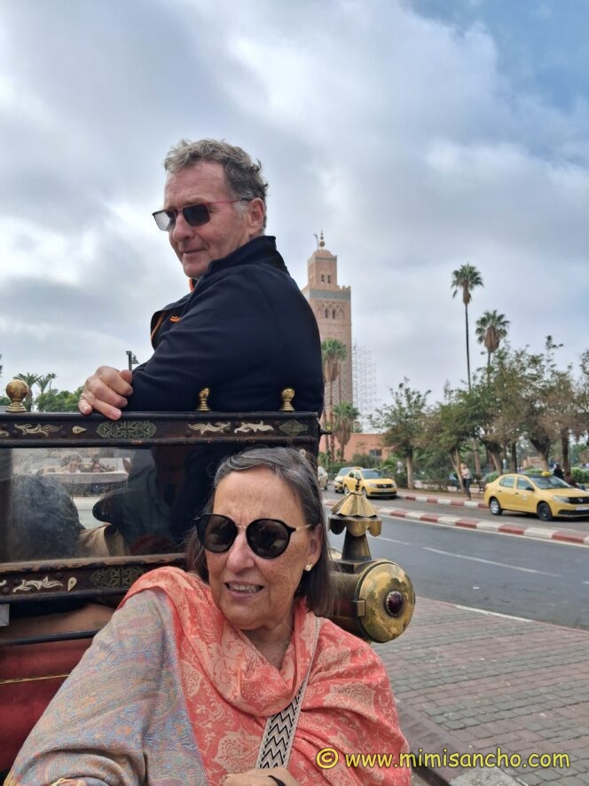 Nous partons couverts, il fait frais ce matin. Le camping a mis en place un service de taxi pour aller à Marrakech, moyennant 100 dirhams (10 euros).