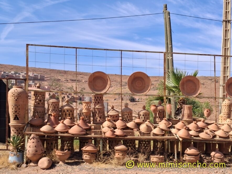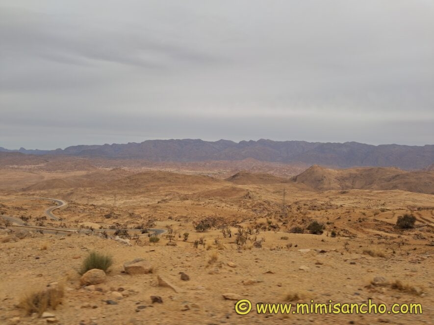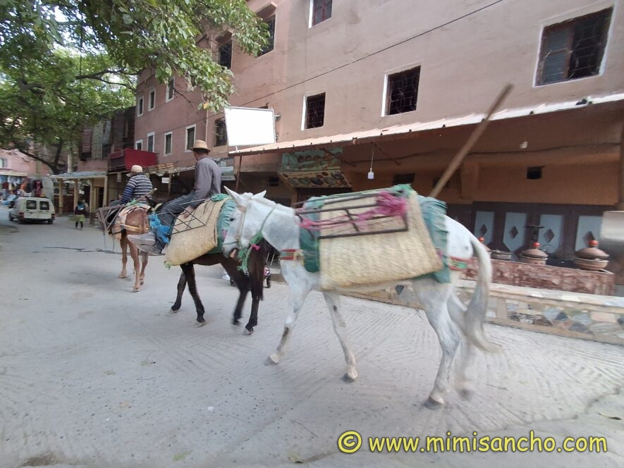 Nous traversons des villages, hélas des détritus, des poubelles sont jonchés sur les abords. Tazaret, l’oued est sec comme beaucoup d’autres. Il n’a pas plu depuis longtemps, paysage aride, pas de cultures ici, des étendues de pierres, quelques troupeaux de chèvres et de moutons. Ici les moyens de locomotion sont les mobylettes et les ânes.