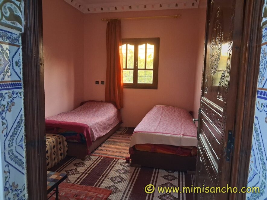 Nous essayons de trouver la maison des guides, et demandons à un jeune si il connaît Lhacen, gentiment, il l’appelle, et nous mène à lui. Nous le remercions de son aide. Lhacen est heureux de nous rencontrer, et nous invite à prendre le thé chez lui, où les “Dix de Cœur” étaient logés.