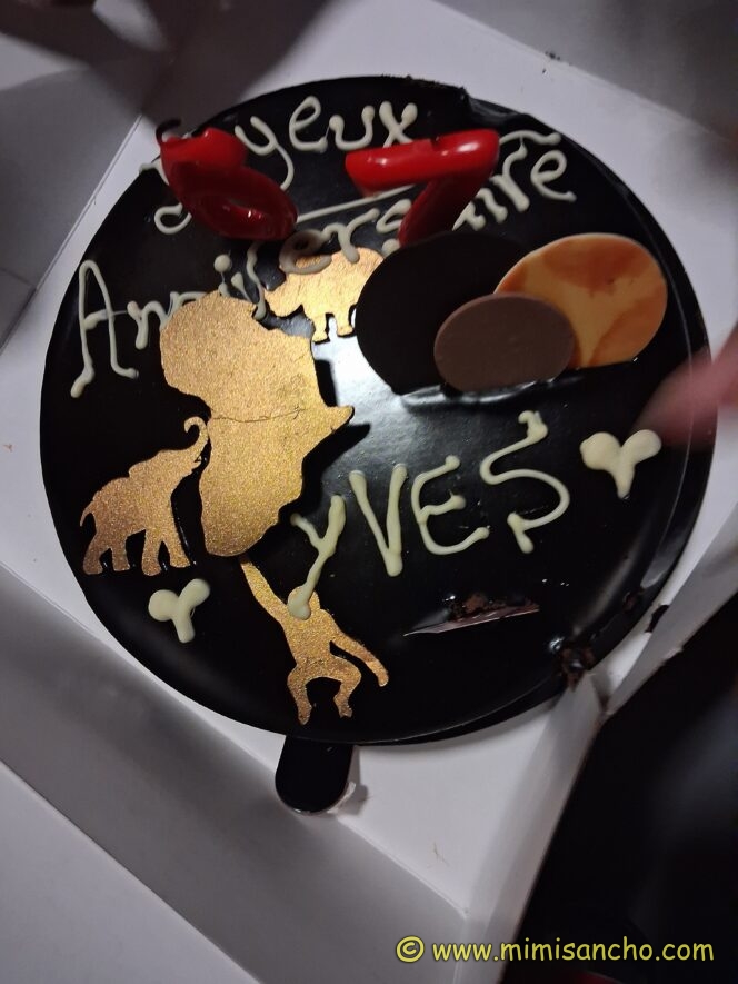 Quelques courses, il nous faut trouver et acheter un gâteau d’anniversaire. Ce sera fait dans une pâtisserie bien achalandée, et au top pour proposer de mettre une inscription sur le gâteau.