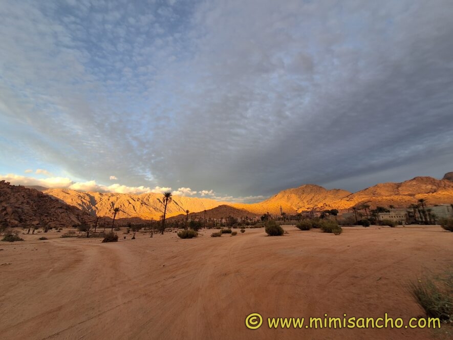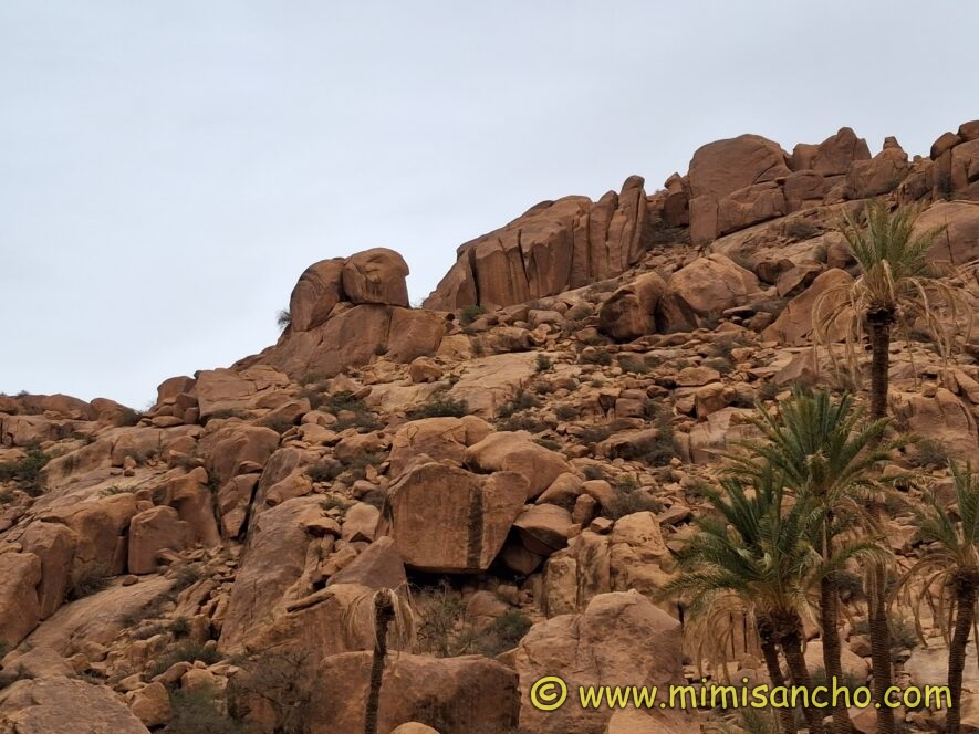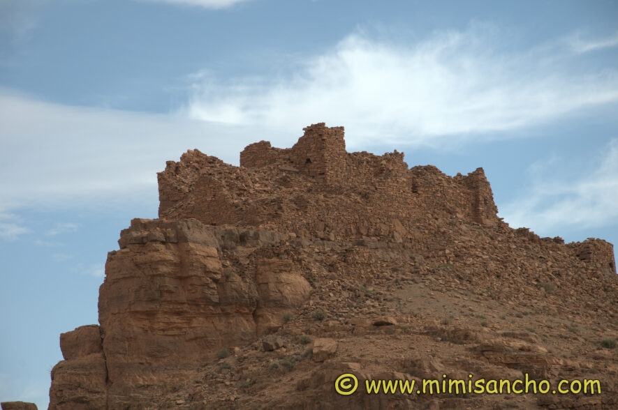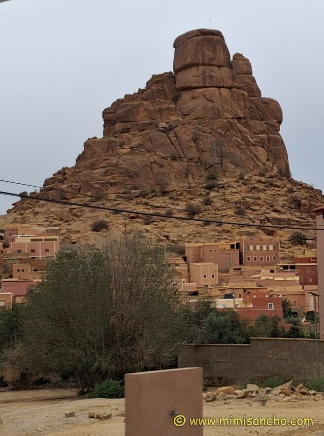 Nous apercevons une colline rocheuse courbée à Agguerd-Oudad, avec un peu d’imagination, c’est la Majestueuse Couronne de Napoléon, son légendaire chapeau qui se dresse au-dessus de la ville, surveillant les maisons tranquilles, le minaret et les palmiers.