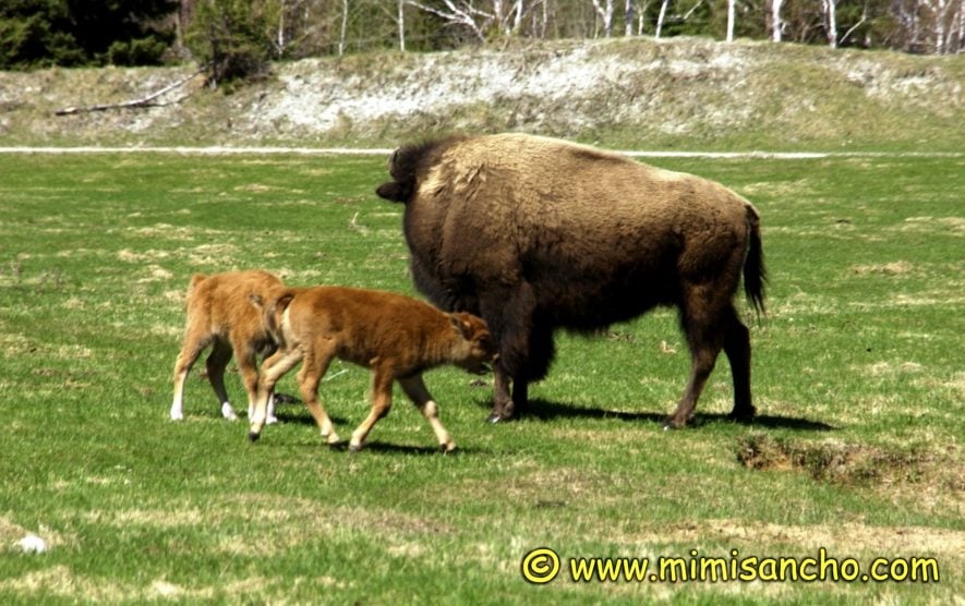 Imagine un zoo sans cage et sans barreau où tu peux circuler en toute liberté pour voir de près les animaux. C’est en petit train pendant une heure que nous faisons dans le Parc « des sentiers de la nature », une excursion de 7 kms, où les animaux sont en semi-liberté à proximité de nous. Nous apercevons une ourse noire avec ses deux petits oursons, des orignaux, des bisons, des urubus, des dindons sauvages, des wapitis, des cerfs de virginie, des bœufs musqués, des loups, des bernacles, des grues du Canada, des pygargues à tête blanche (aigle pêcheur), des cygnes trompettes, des mouflons, ……..et bien d’autres.